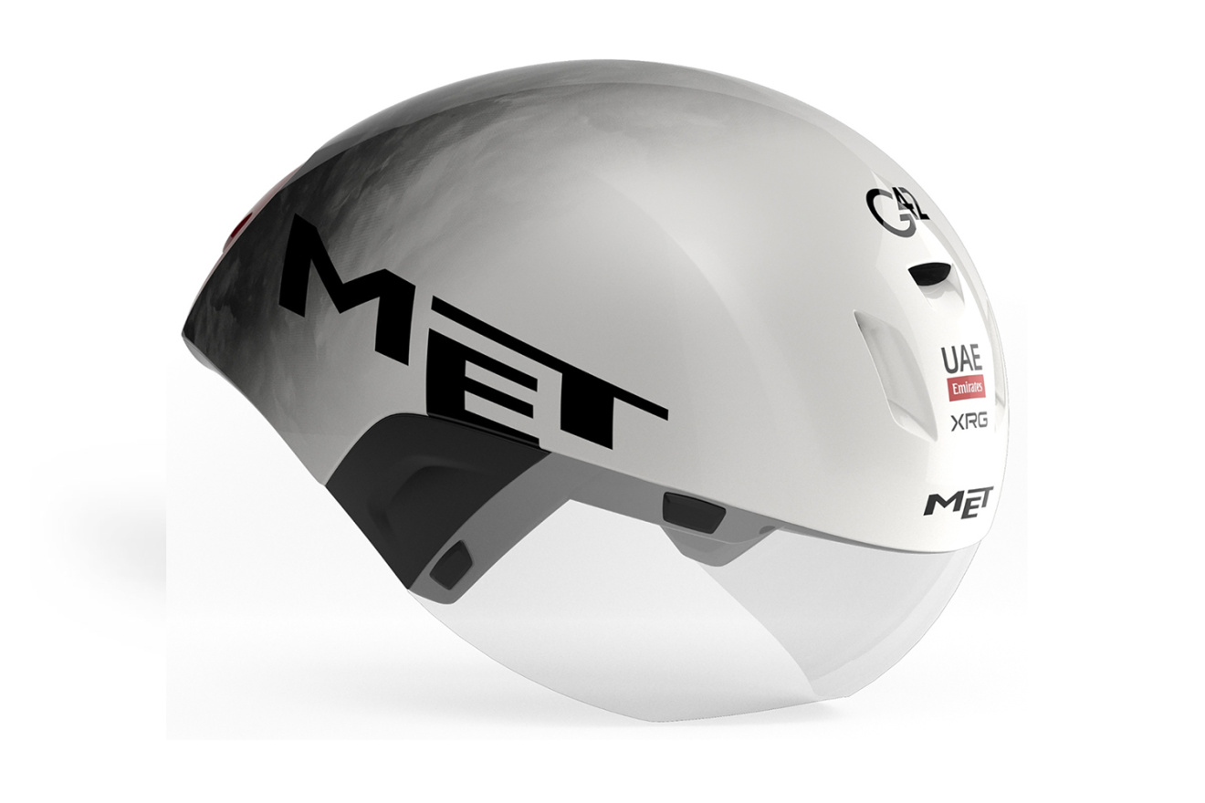 Шлем для триатлона MET Codatronca, это укороченная аэромодель, созданная специально для триатлона и скоростных заездов. Часть лимитированной коллекции UAE Team Emirates XRG. Протестирован в аэродинамических трубах Politecnico di Milano и Milano Newton Lab.