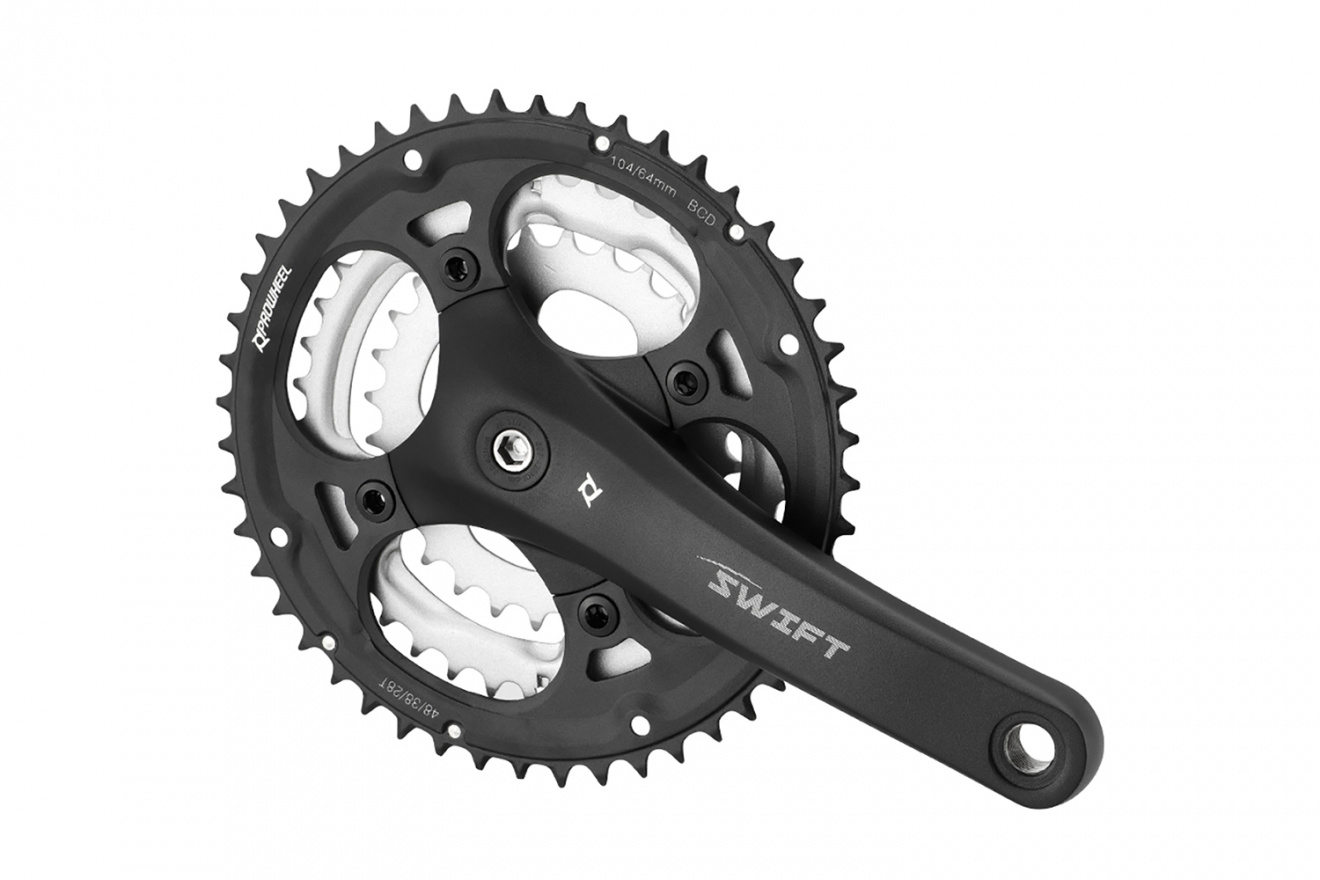 Алюминиевая звезда 48T с ЧПУ обработкой и стальные звезды 38-28T обеспечивают великолепную передачу мощности и выдерживают максимальные нагрузки, а шатуны из кованого алюминия AL-6061-T6 отвечают за легкий вес.