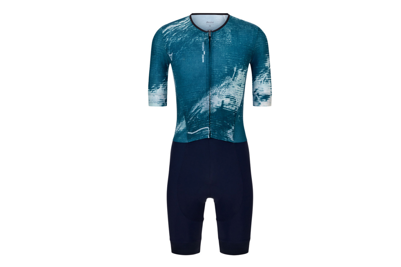 Стартовый костюм для триатлона Santini Leaf Motion, короткий рукав создан для максимальной производительности во время соревнований на длинные дистанции.