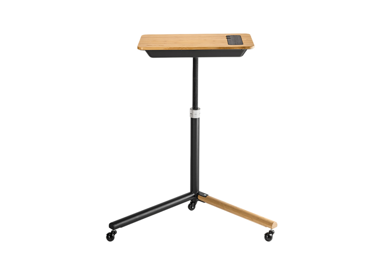 Конструкция из стали и бамбука отличается устойчивостью и прочностью, а широкая опорная поверхность и внутренний отсек для кабелей идеально подойдет для ноутбуков, планшетов и смартфонов.