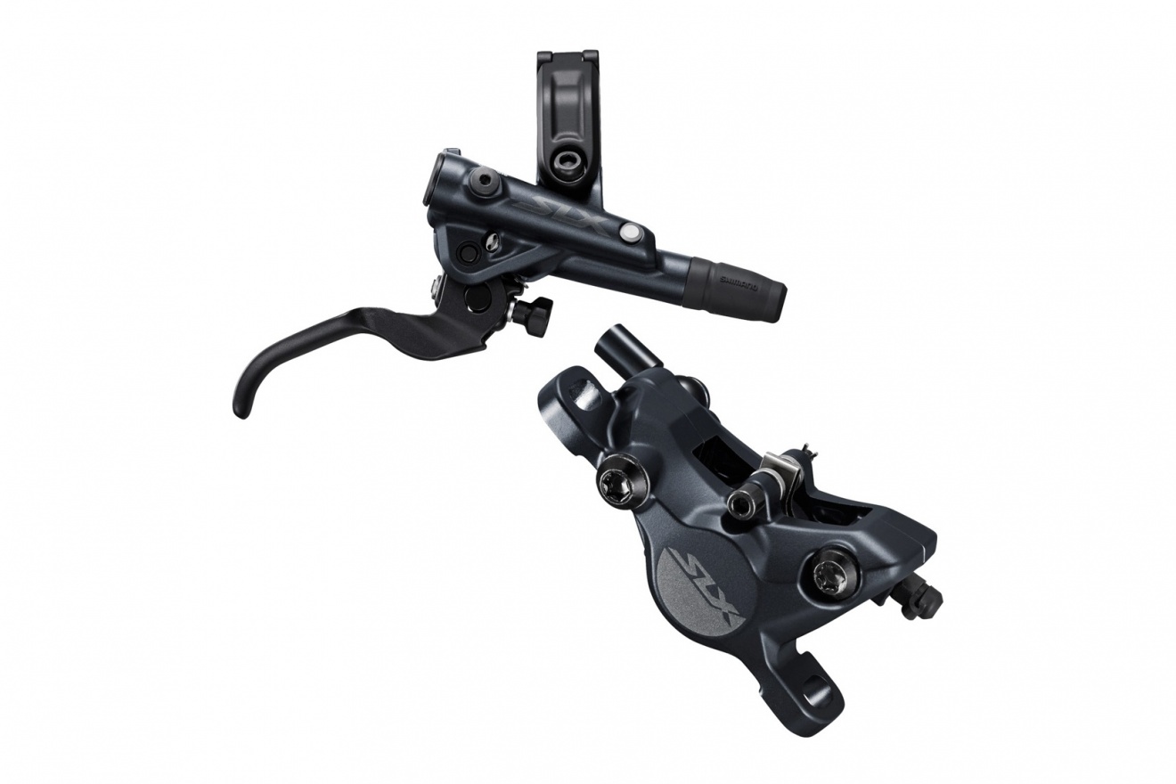 Тормоз дисковый Shimano SLX M7100 это готовый для установки комплект из 2-х частей, готовая тормозная ручка с жидкостью герметично закрытая на конце и тормозной калипер с прокачанной гиролилинией и герметично запаянной на конце. Такой комплект необходим при самостоятельной установке тормоза без прокачки на раму с внутренней прокладкой. После прокладки, гидролиния просто вставляется в ручку и обжимается компрессионным болтом.