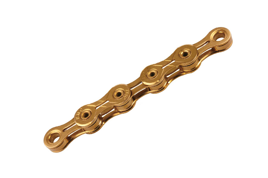 KMC X10SL Gold велосипедная цепь на 114звеньев совместима с 10-скоростными трансмиссиями, с непревзойдённой прочностью и повышенной жёсткостью, покрытая нитридом титана.