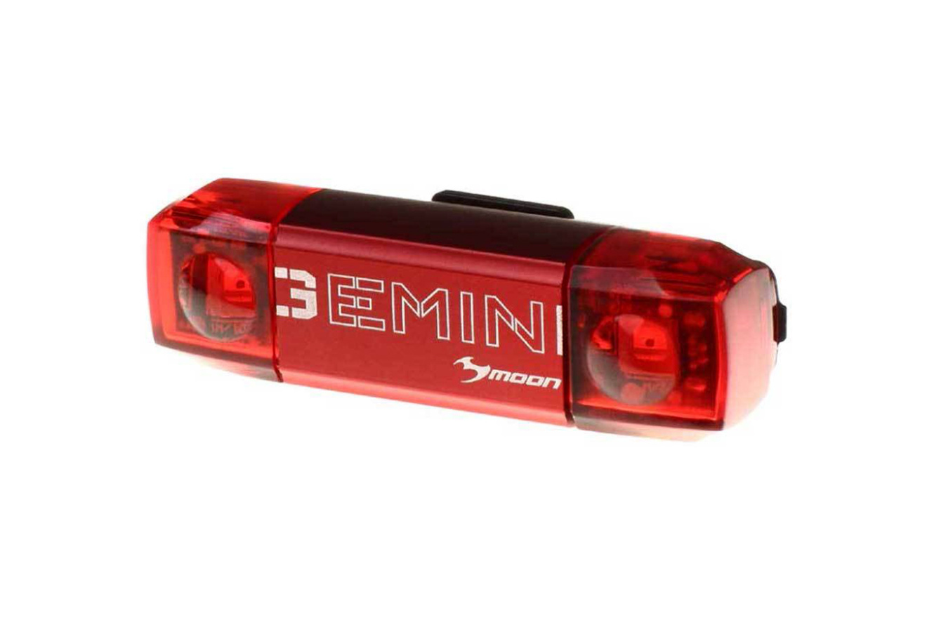 Задний велофонарь Moon Gemini с широкоугольным световым потоком для безопасности велосипедиста на дороге. Семь режимов работы обеспечивают видимость в любое время суток.