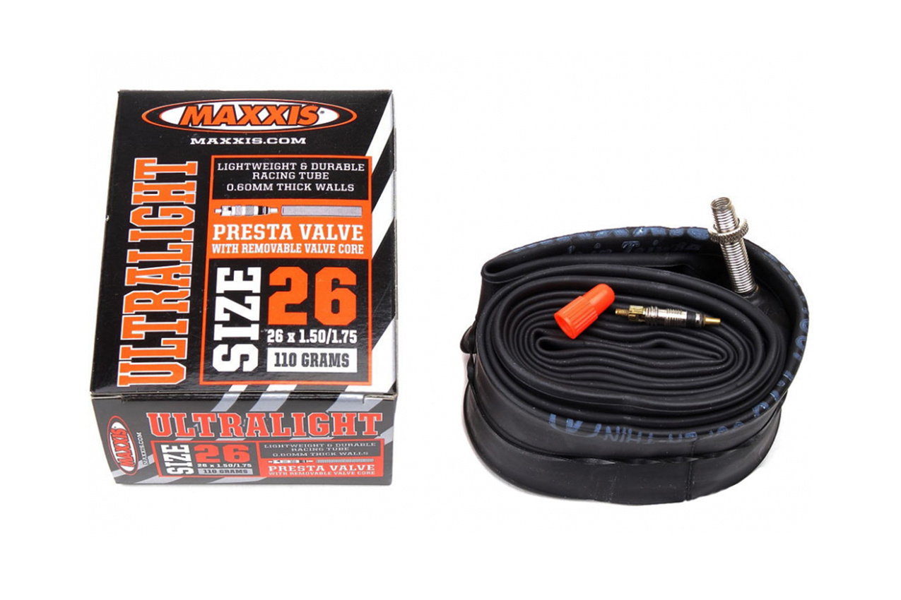 Велокамера Maxxis Ultralight, 26 дюймов, Presta, это лучший выбор для скоростных гонок или тренировок.