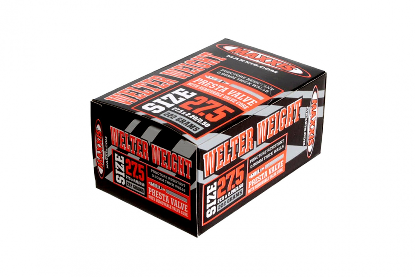 Велокамера Maxxis Welter Weight, 27.5 дюймов, Presta 48 мм, это легкий вес и невероятная прочность.