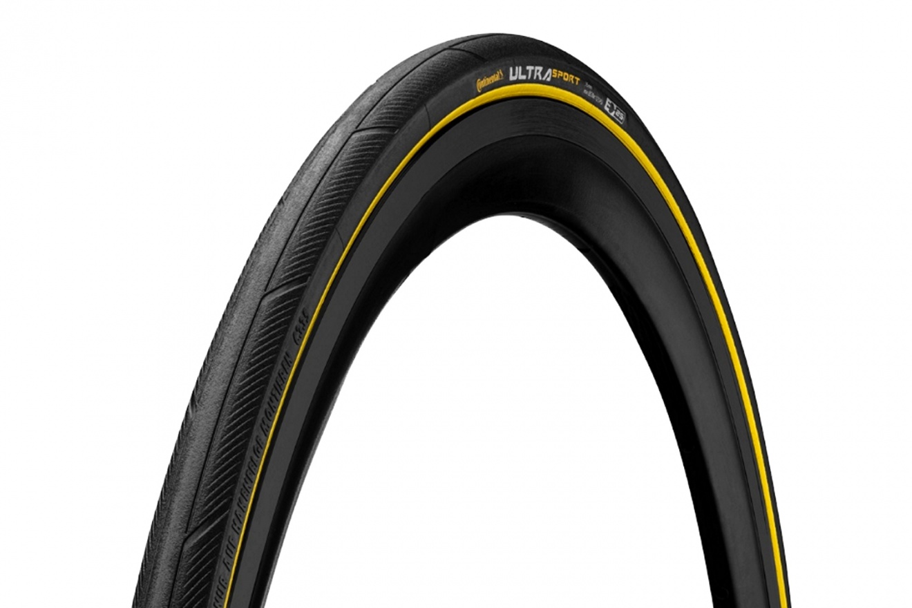 • Велопокрышка Continental Ultra Sport III Folding, складной корд, 23-622 (700x23C), черно-желтая