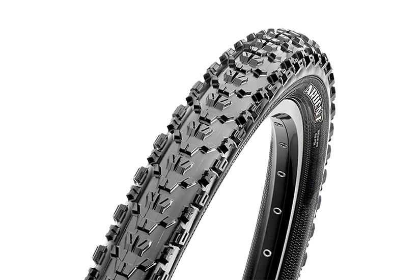 Покрышка Maxxis Ardent Single на 29 дюймов с плотным рядом шипов по центру и крупными грунтозацепами по бокам.