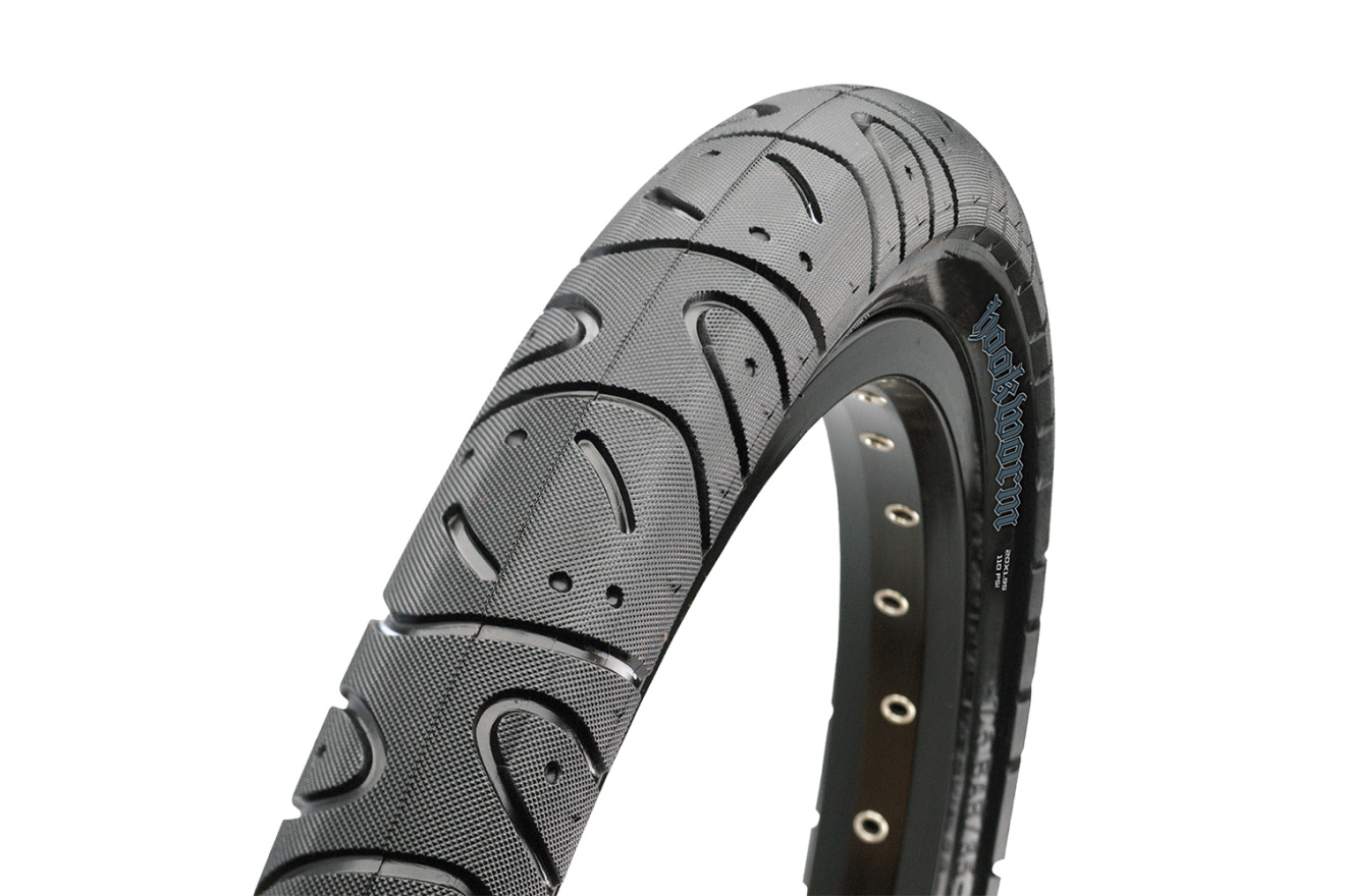 Велопокрышка Maxxis Hookworm Single с протектором, идущим от одной стенки обода до другой, позволяет использовать покрышку для прыжков через двухпролетные лестницы или катания в скейтпарках.