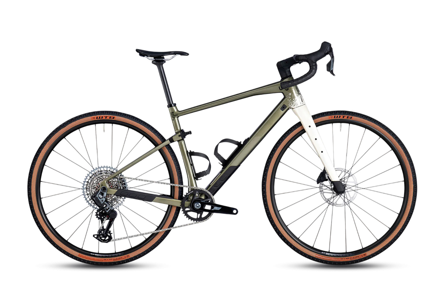 Карбоновая рама с интегрированной системой хранения в нижней трубе отличается легкостью, прочностью и отзывчивостью, карбоновая вилка с креплениями для крыльев и багажника эффективно поглощает вибрации и обеспечивает полный контроль над управлением.
