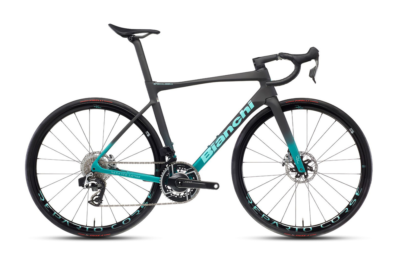 • Велосипед шоссейный Bianchi Specialissima RC Red eTap AXS 12SP With Powermeter (EU), черно-голубой, размер 590