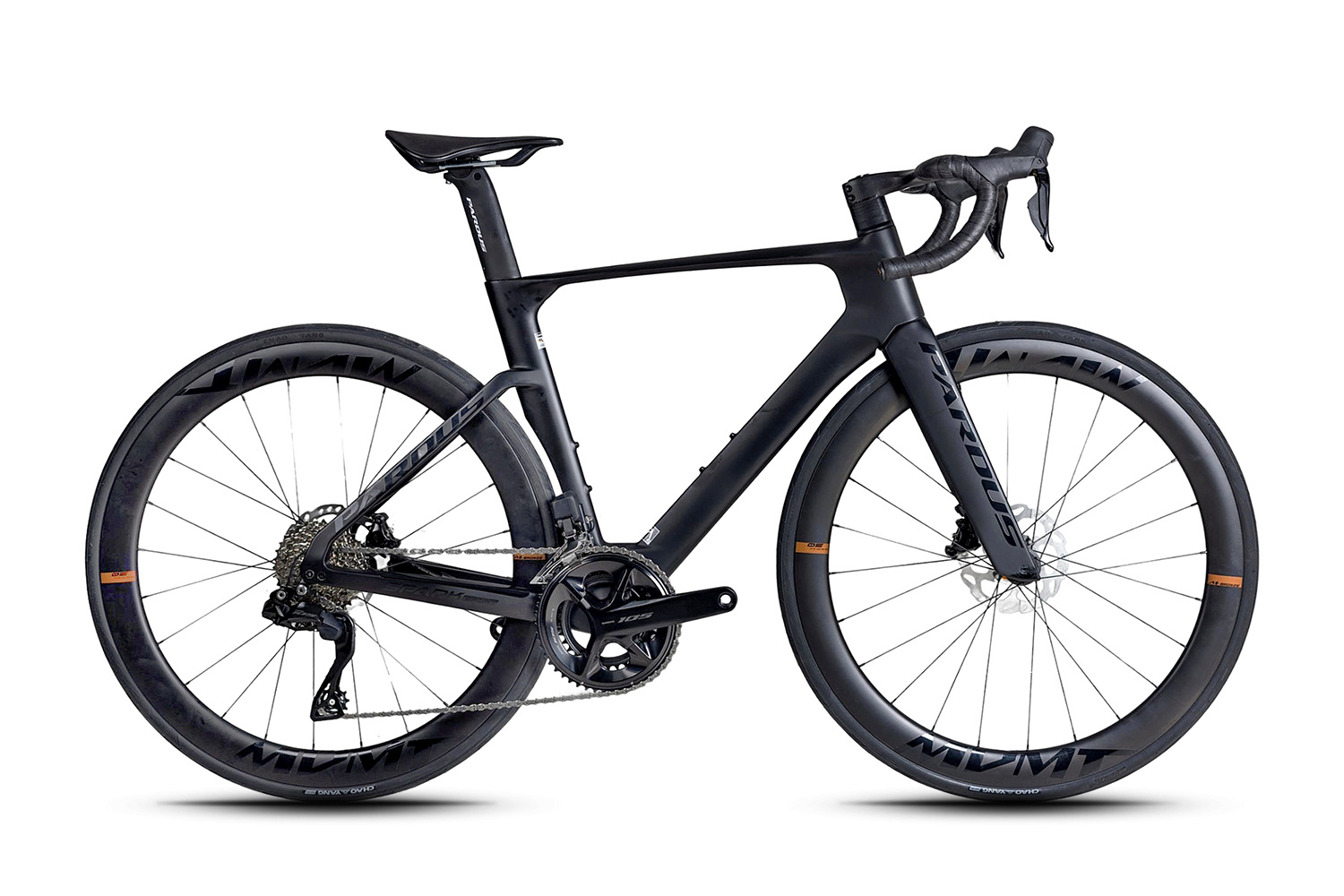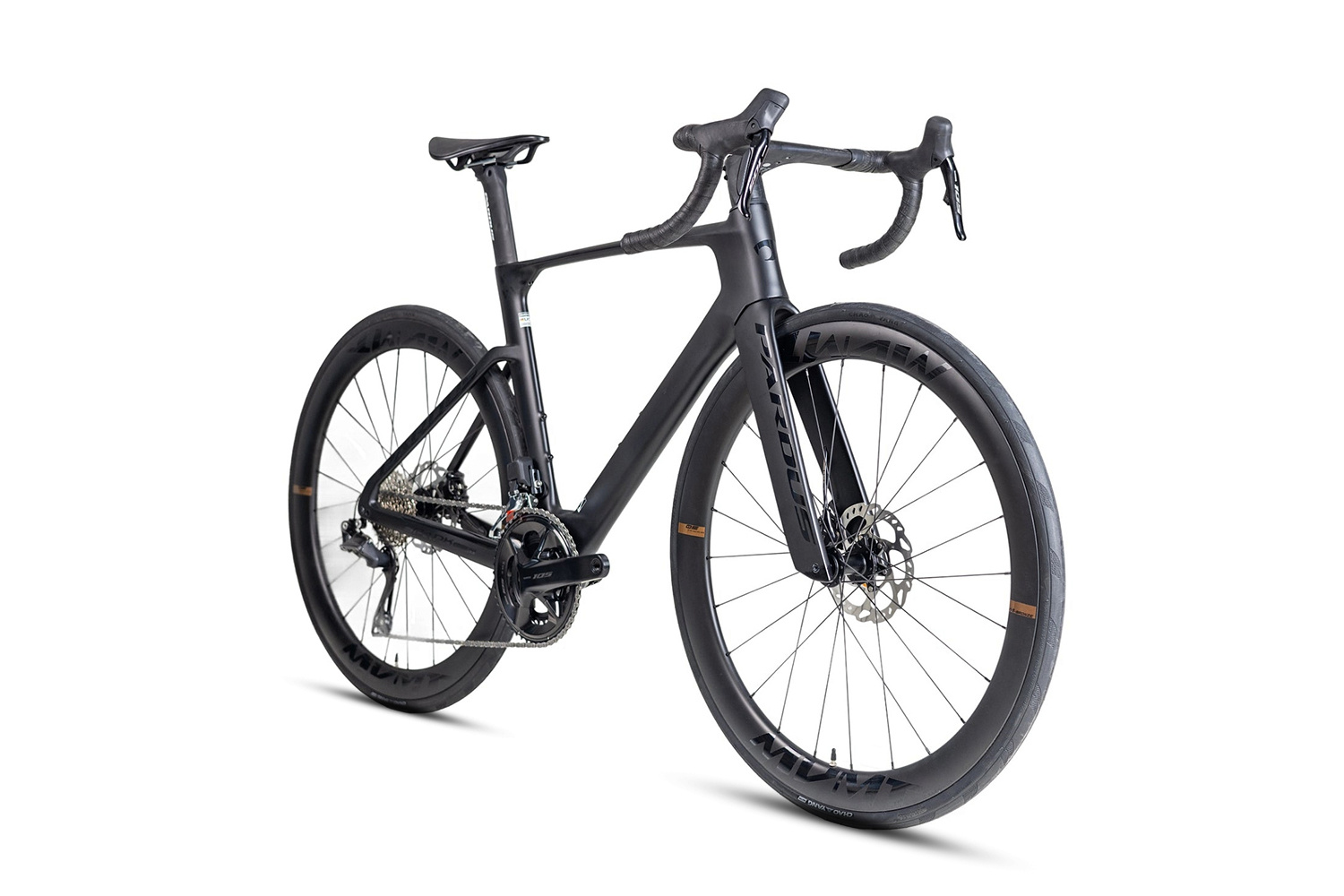 Велосипед поставляется с электронной трансмиссий Shimano Dura-Ace Di2, дисковыми гидравлическими тормозами и карбоновыми колесами 28".