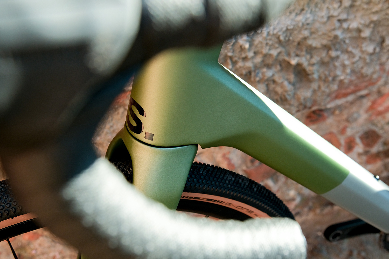 Легкая карбоновая рама с инновационной геометрией и системой внутренней прокладки тросов обеспечивает оптимальную жесткость и универсальность, подходит как для эндуро-гонок, так и для сложных гравийных маршрутов. Жесткая карбоновая вилка отвечает за полный контроль над управлением и эффективное поглощение вибраций.