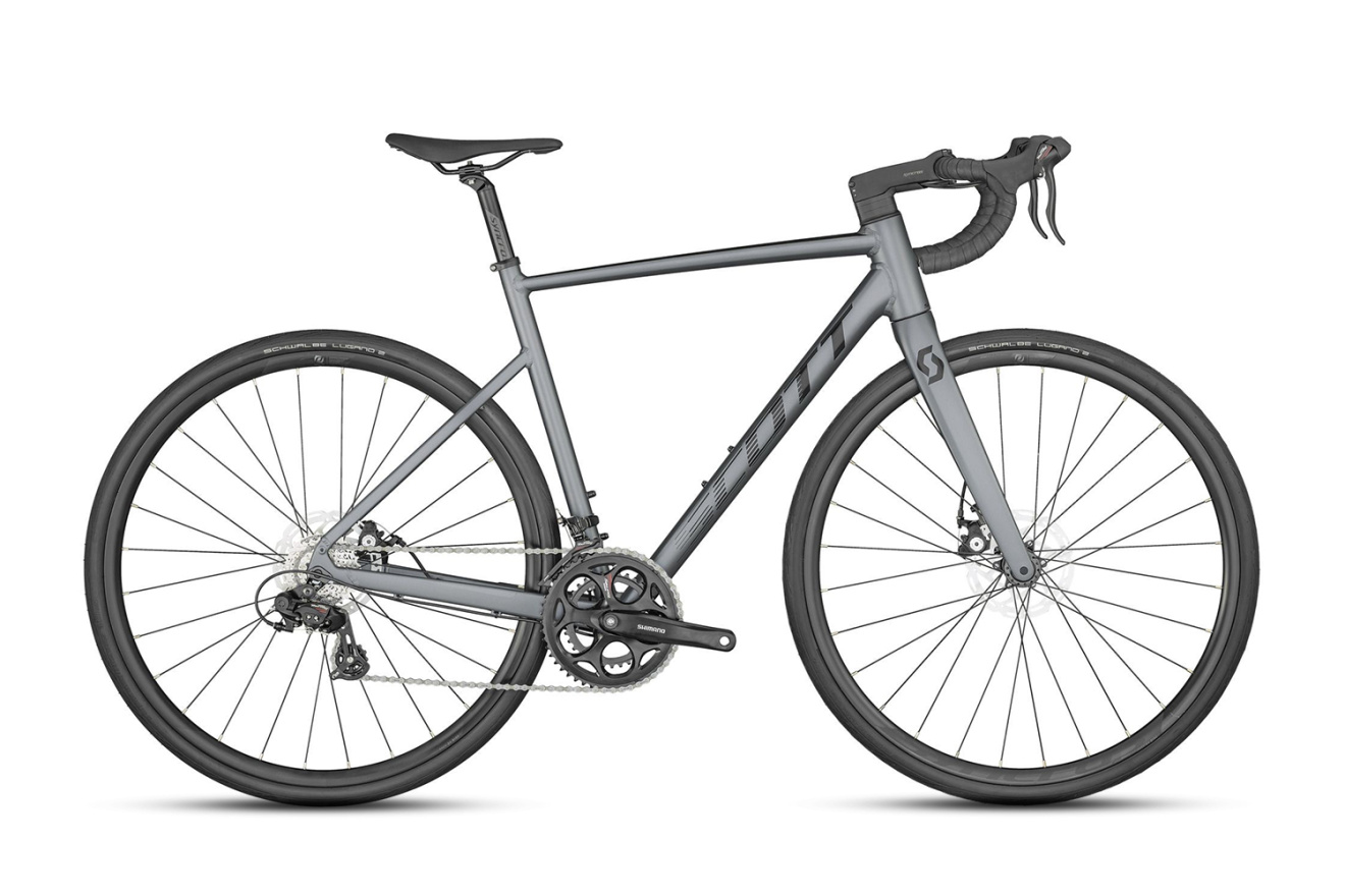 Велосипед шоссейный Scott Speedster 50 (2023), это легкий и маневренный байк для поездок на длинные дистанции.