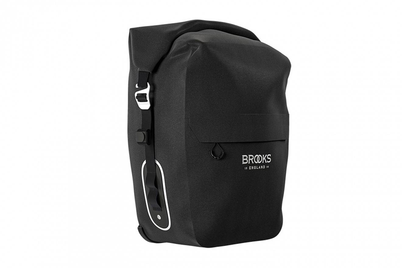 Велосумка на багажник Brooks Scape Pannier Large с закрывающимся верхом водонепроницаема по стандарту IPX4.