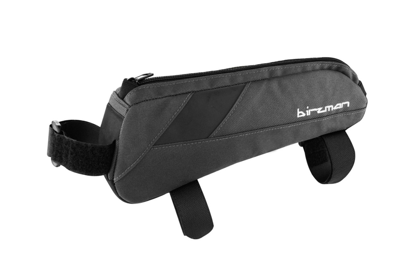 Велосумка Birzman Belly Tri для размещения над верхней трубой рамы, выполненная из материала с водоотталкивающей пропиткой. Длинная и вместительная, имеет достаточный для хранения необходимого в коротких поездках оборудования объем. Застегивается на молнию, снабжена светоотражающими элементами для повышения безопасности езды в ночных условиях. Закрепляется при помощи болтов или застежек на липучке. Внутри сумки предусмотрен органайзер из эластичной ленты, предназначенный для энергетических гелей.