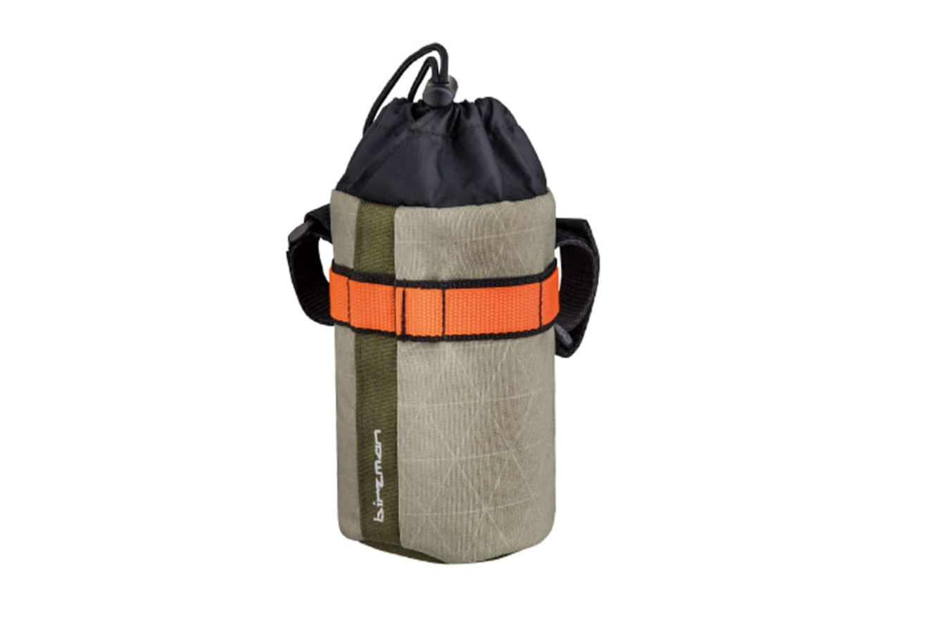 Велосумка Birzman Packman Travel Bottle Pack на шнурке, выполненная из высокоплотной водоотталкивающей ткани. Оригинальная альтернатива обычному флагодержателю, созданная для байкпакинга. Предназначена для фляг объемом до 750 мл, или до 25 см в высоту и 9 см в диаметре. Рассчитана на установку на руле с помощью двух регулируемых по положению ремешков на липучке, но также подойдет для размещения в любом удобном месте на раме. Поможет держать питье под рукой в длительных велопутешествиях.