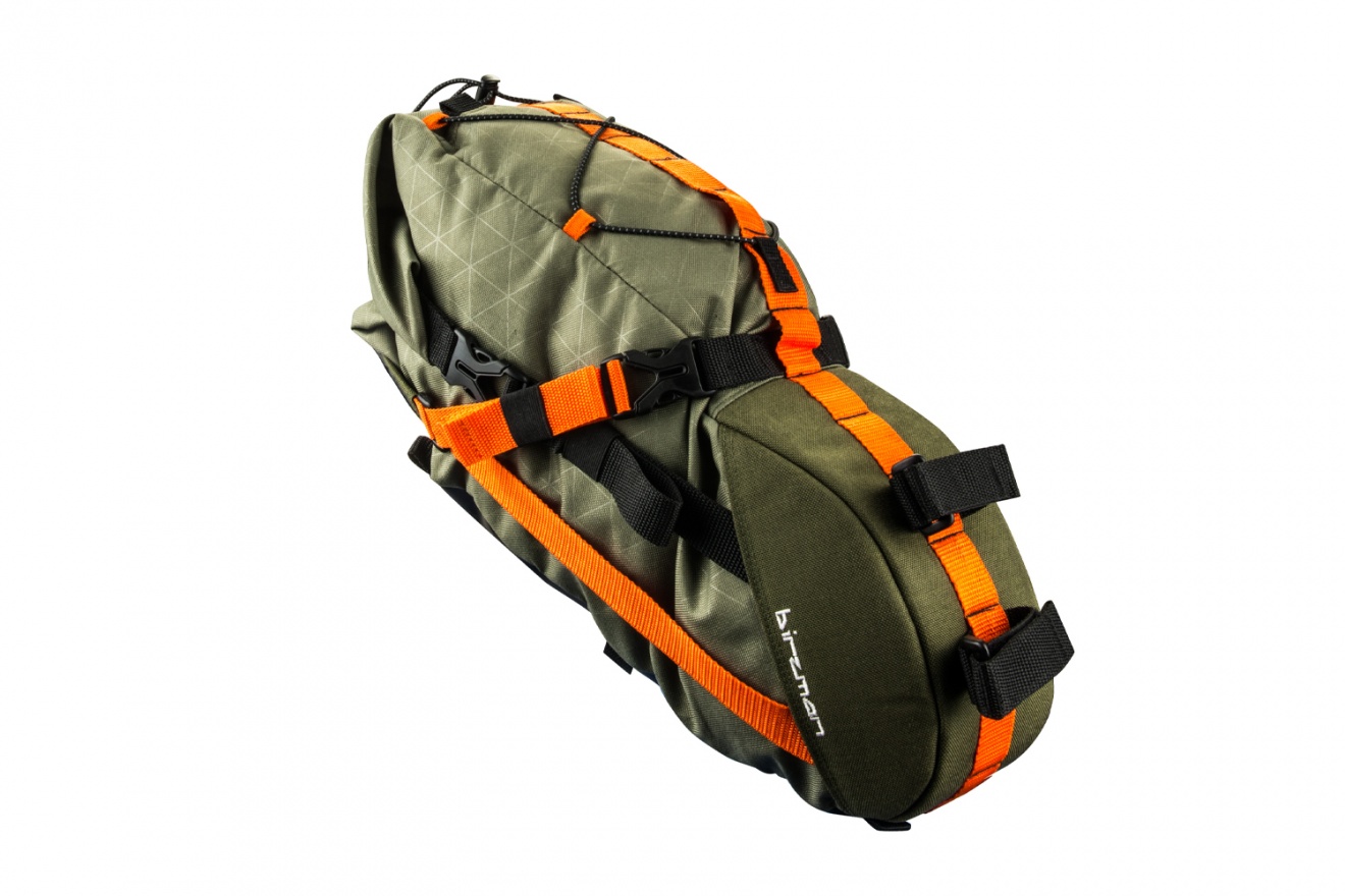 Велосумка подседельная Birzman Packman Travel Saddle Pack, для байкпакинга, 6 литров отличается простыми застежками-липучками на подседельной трубе и регулируемыми боковыми ремнями для дополнительной устойчивости.