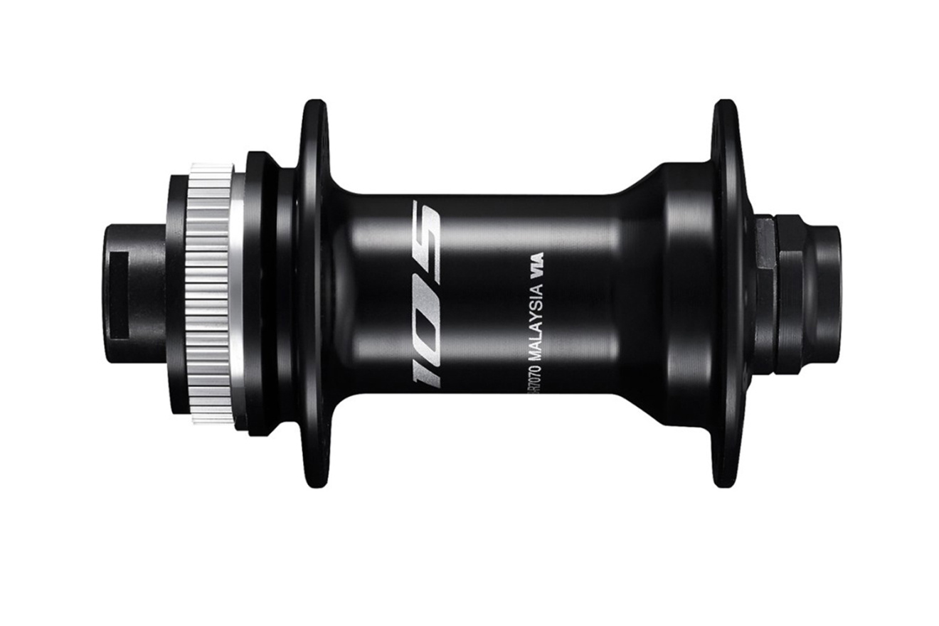 Втулка передняя Shimano 105 HB-R7070 под дисковый тормоз с креплением Centerlock для шоссейных велосипедов. Совместима с 10- и 11-скоростными кассетами.