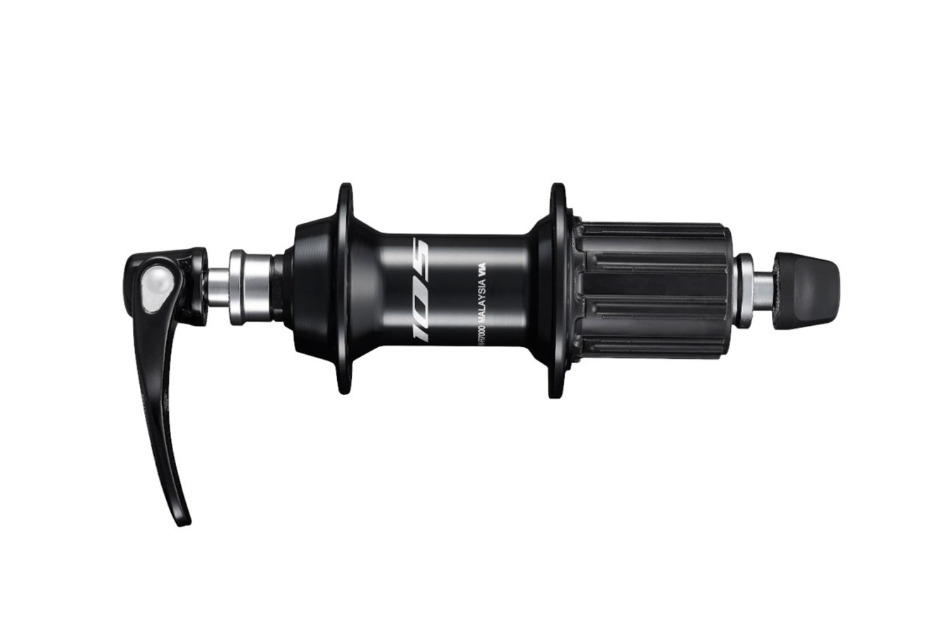Задняя втулка Shimano 105 FH-R7000 для шоссейных велосипедов полупрофессионального класса с 10/11-скоростной трансмиссией и ободным задним тормозом.
