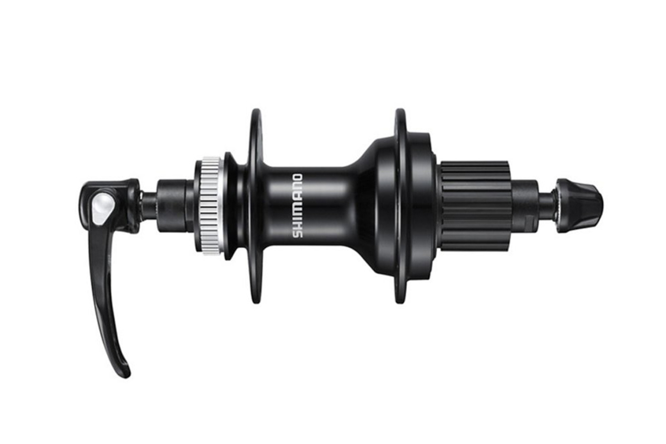 Задняя втулка Shimano FH-MT500-B для горных велосипедов полупрофессионального уровня с 12-скоростной трансмиссией и дисковым задним тормозом.