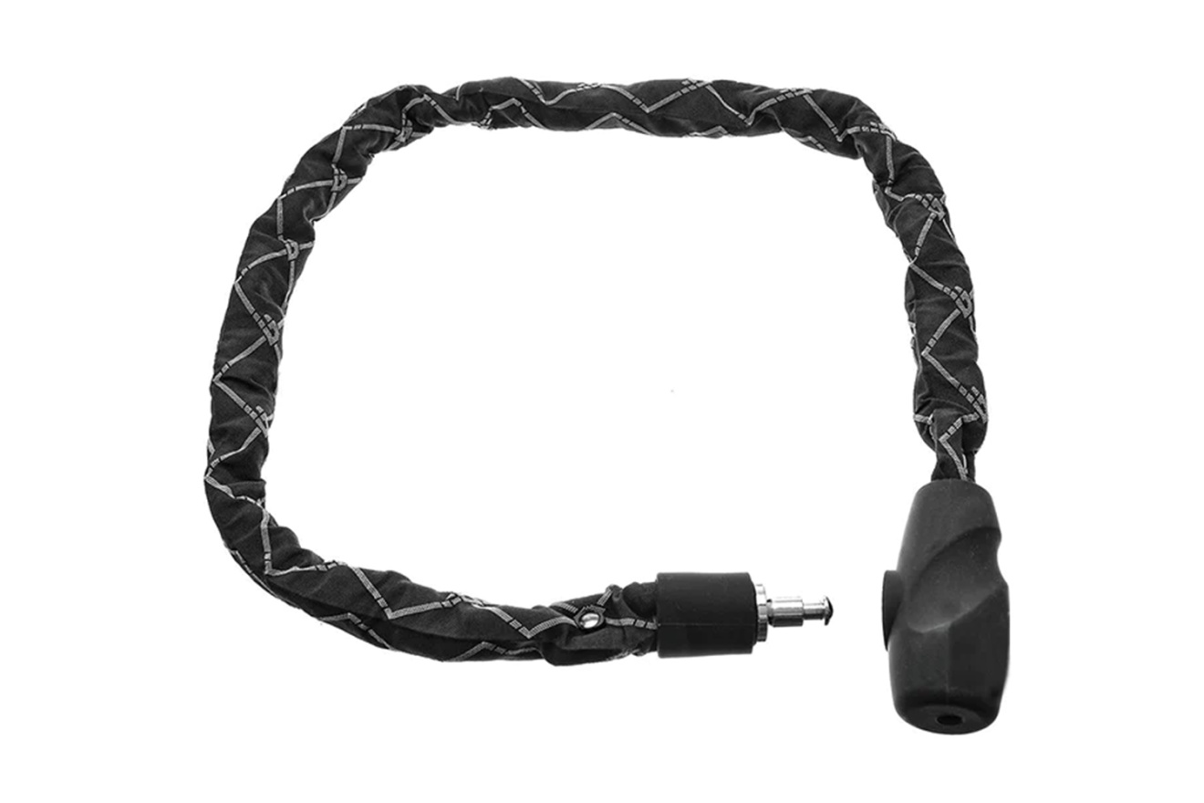 Звенья толщиной 7 мм из закаленной термообработанной стали с нейлоновой оплеткой устойчивы к разрыву и распиливанию, а также предотвращают появление царапин на раме или компонентах велосипеда.